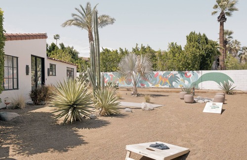 Located just steps away from the downtown strip, San Simian is the perfect location for exploring all that Palm Springs has to offer. You'll find a variety of shopping and dining options right outside your doorstep, making it easy to enjoy the city's vibrant energy. For those with an active lifestyle, this home is close to popular hiking trails as well as bike rental shops. Once you've explored and built up an appetite, head across the street for a world-famous bacon flight from Cheeky's for breakfast, or reserve a romantic dinner at Workshop Kitchen+Bar and experience the award-winning 1920s architecture, not to mention the stunning mountain views and unique dishes.