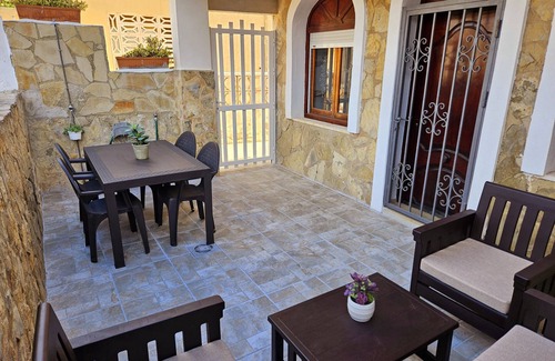 Cozy ground floor apartment, in the first line of the beach, located just behind the dune of the beautiful Xeraco beach. It has two bedrooms, one with a double bed and the other with two single beds, a full bathroom with a shower tray and a living room with an fully equipped American kitchen, including a dishwasher for greater comfort. It has ceiling fans in the bedrooms and living room. Offers WIFI service, and AC (cold/heat) in the living room. It has mosquito nets on all windows.It has a lovely terrace with awning, table and chairs, and a chill-out corner, where you can enjoy the sea breeze. It is an ideal place to relax and enjoy a quiet beach holiday. Capacity 4/5 people.Young groups under 30 years old are not allowed.NO PETS ALLOWED.Our apartments are delivered clean and include bed linen and towels (1 bathroom-shower/person, 2 toilet/bathroom). Includes fortnightly bed linen change. We recommend bringing a small kit with cleaning/laundry products/various. Pressure cooker, blender, toaster, and hairdryer are not standard. If any of these are essential, do not forget to bring them!Key collection will be done at our offices, at C/ TOSSAL DE L'ULLASTRE Nº7 PLAYA DE XERACO, from 1:00 pm. There is the possibility of key collection outside office hours, by requesting it in advance and having previously deposited the deposit. The exit and evacuation of the accommodations will be done before 10:00 am. Keys can be deposited inside the accommodation after consultation, or returned to our offices. Upon arrival, you will have two options to deal with possible damages: either leave a deposit of €150 that will be returned after apartment review, or contract an ACCIDENTAL damage exemption (Insurance) of €28 non-refundable.The Xeraco City Council offers and manages a free public WIFI service throughout Xeraco beach (service not guaranteed inside apartments).Xeraco beach offers lifeguard service in high season, as well as a wide variety of beach bars, restaurants, ice cream shops, supermarkets, press, pharmacy, and many other services. The water entry slope is gentle, ideal for children and seniors. It is a very family-friendly beach, with little traffic, surrounded by fantastic nature and landscapes. In low season, we recommend having vehicle access to move around the region, where there are many cultural and gastronomic visits worth seeing. There are many hiking routes, both in the mountains and through the marshland. In the latter, very popular among ornithologists. The l'Ahuir beach, a stretch of virgin beach without buildings, due to its environmental and ecological weight, where birds nest and we find native plants, is undoubtedly another experience for the visitor. Let's not forget fishing, which can be practiced on beaches, sea arms, and rivers.