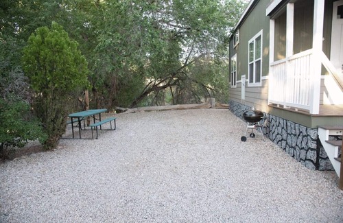 Sand Flats Cabin is a 1-bedroom, 1-bathroom tiny home that sleeps 6, just a short drive from Arches and Canyonlands. With a king bed in the bedroom, a king in the loft, and a pull-out sofa, there’s room for family or friends. Enjoy a fully equipped kitchen, climate control, Wi-Fi, and a porch perfect for desert evenings. While not pet friendly, the cabin offers first-come, first-served parking for trailers and oversized vehicles.
