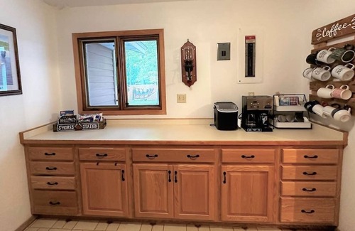 The main living room, back rec room, and upstairs den all have smart TVs. There is plenty of space for groups up to 12 people to spread out and find a quiet corner to cozy up with a book or puzzle. Guests of this property have access to the entire home. The screened porch offers places to relax and eat. The cozy rec room has space to curl up by the gas fireplace and offers an air hockey table plus a game table for board games and puzzles. An assortment of games and puzzles are available onsite, as well as a Little Free Library of books and puzzles just down the road.