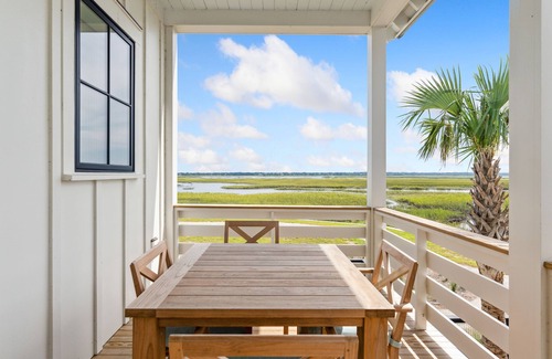 One of only eleven exclusive furnished boathouses, "The Sanderling" is designed for romantic escapes or as your perfect base for authentic Lowcountry adventures. It features a convenient kitchenette with a Keurig-style coffee maker, cooktop, dishwasher, microwave, stand-alone ice maker, and a mini-fridge. Relax in the inviting king bed and enjoy the walk-in shower with a tub. Your private outdoor porch offers a perfect vantage point for breathtaking coastal views. An outdoor shower is available in the garage, though an in-unit washer/dryer is not provided. (Kindly note, this 2nd-floor property is accessed via 16 steps.)