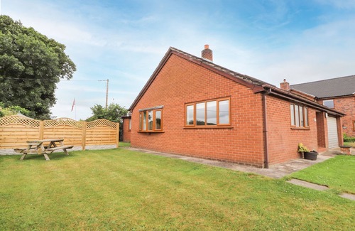 This detached bungalow rests in Higher Kinnerton, Flintshire and can sleep five people in three bedrooms.