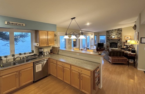 Unwind on our spacious deck, gather around the fire pit, stroll the beach, hide away on the private outdoor promontory, or cozy up inside to enjoy the scenery. Plus, enjoy seasonal use of kayaks and a rowboat (waiver required).