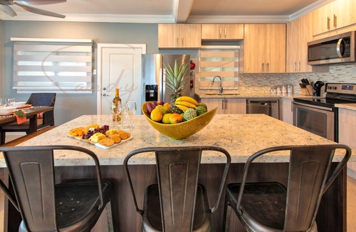 Sandy Bottoms is a 3 bedroom ( 1 king, 1 queen, 2 twins), 2.5 bathroom villa that also boasts a living room, full-sized kitchen & dining area, and in-home laundry.