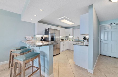 You'll enjoy luxury extras without sacrificing the comforts of the home, including updated appliances and electronics, new furnishings, and lavish finishes throughout! The living room was designed with relaxation in mind, boasting plush sofas and chairs, a large wall-mounted flat-screen TV, and beachfront balcony access!