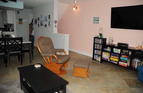 Enjoy your morning coffee and watch the sunrise from the deck off the master bedroom or living room. This townhome features central air, ceiling fans, cable TV, wifi.