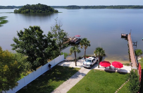 Relaxing and fun will describe your stay in this beautiful 2,400 square foot lakehouse. Bring your boat because you'll be in the scenic Potato Creek area of Lake Marion, legendary for its fishing and wildlife. Bald eagles and ospreys soaring overhead is an everyday sight as you enjoy fantastic fishing and water sports on Lake Marion. Relax by the lakeside as you grill your catch of the day and watch the sunset as it fades into starlight while gathered around our fire pit. The Santee National Wildlife Refuge is just 1/2 mile by boat and is also easily accessible via car, by bike or hiking trails. Five golf courses and shopping helps keep your vacation options open. Keep all the comforts of home, like one gigabyte of high speed wireless internet and Satellite TV while enjoying your getaway. Copyright 2016