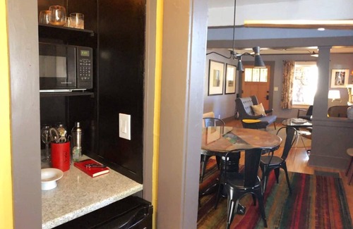 Sapo Encantador (the Charming Toad) is a time capsule spanning 100 years of Tucson's history. The comfortable, livable interiors feature custom furniture, a quirky collection of original art along with iconic mid-century design, all set within this 100 year old territorial arts-and-crafts style property. A heated pool & spa are nestled in an enclosed back garden for extra privacy.