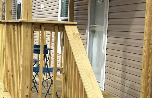 Introducing our latest addition: a modern 2-bedroom, 2-bathroom modular unit designed to offer the utmost in privacy and comfort, just like home. This unit features dedicated parking for two vehicles, a fully equipped kitchen, washer/dryer, a welcoming front porch complete with seating. Additionally, guests have access to our terrace, deck and nature trail as well as a rustic communal fire pit, perfect for gathering under the stars.