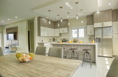 Serenity By the Sea (SBS) is a Modern 5 bedroom Villa overlooking the Caribbean Sea. This modern villa includes a private swimming pool and roof top terrace. We are a short 25 Min drive from the airport, 5 Min from Dolphin Cove, 5 min from local excursions, 5 min from Tryall Golf Course, 25 Min from Montego Bay's Hip Strip and 45 min drive to Negril's 7 mile beach.