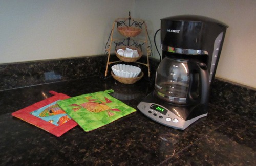 The Master bedroom contains a king size bed with an on-suite bathroom. The second bedroom has a queen size bed. A second bathroom is located across from the front bedroom. In the living room, a full pull-out sofa bed is also available. Comfortable sheets are supplied for all beds. Fresh towels and wash clothes are supplied in both bathrooms. Hotel toiletries are offered for those forgotten items.