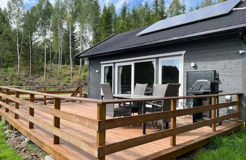 A place by the water with no neighbors in the middle of the forest. Enjoy a nice walk, fishing with the included rowing boat or just relax on the terrace with a magical view.