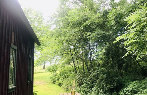Welcome to our slice of heaven. We are thrilled to share this magical place with you. Head into town for a day filled with breweries, trout streams, icecream, pizza, bike trails, and shopping, then head to your retreat rental for peace, quiet, private hiking trails, an historic orchard, springs, and gardens upon gardens. The historic property’s guest cottage is perfect for a getaway for one or up to a family of five. The king bed with rave reviews sleeps three, a darling single as well, the leather couch is great for one and the air mattress accommodates one more. Enjoy dining in and watching the sunset from your private use patio. Let the stresses of the day melt away in the hot tub located in a beautiful flower and limestone wall garden between the cottage and the main house. Enjoy!