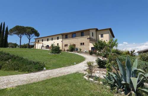 Perched on a green hill in a dominant position with open views, this ancient and majestic farmhouse overlooks the enchanting valley of Marsciano and Deruta, giving guests an immense and very pleasant panoramic view, enjoying your stay here in Umbria in a unique atmosphere , immersed in the Umbrian countryside a few kilometers from Perugia, where the smells of the countryside and the quiet reign supreme.