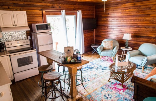 The living room has a large comfortable sofa, which can be used to sleep a third person if needed. Also, both the living room and bedroom have large flat screen tvs and high speed internet. The bedroom has a brand new queen size mattress and all new linens as well. Scarlett also has a twin size cot, which can be set up too. The completely remodeled bathroom has beautiful Spanish tiles, which fit perfectly with the feel of St. Augustine. The kitchen area features quartz countertops, new appliances and has everything that you'll need to prepare, cook and serve meals.