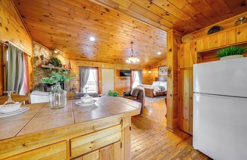 Experience the serenity of nature when you book 'The Wolf Cabin,' a secluded vacation rental on a stunning stretch of Smithville countryside. Ideal for a romantic couple's retreat or a family getaway, this 1-bath studio cabin is perfect for rural relaxation. Lounge on the covered porch, fire up the charcoal grill for a BBQ, or stargaze around the fire pit! When you're ready to explore, you can wander along the on-site walking trails or plan a day trip to Broken Bow Lake.