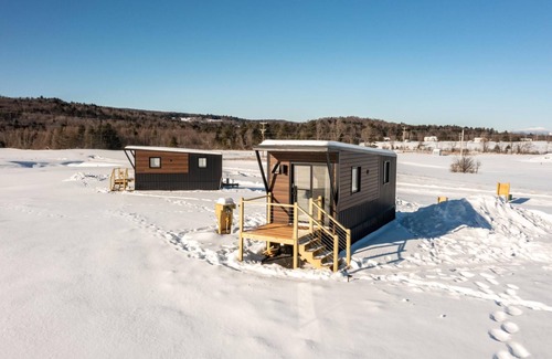 Come stay at our "Goat" Tiny Home, named after our favorite Stowe ski trail. You'll always remember your time at this unique home. Situated on 40 acres of farmland with stunning views, just minutes to Stowe Village and Stowe skiing. Enjoy the comforts of a high-end hotel suite with the privacy of your own mini-house.
