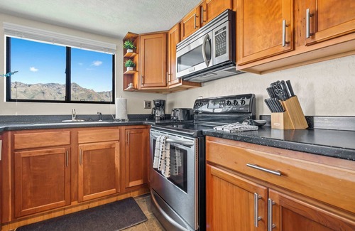 Welcome to your peaceful desert getaway in the scenic Sabino Foothills! This 1-bedroom, 1-bath unit is perfect for solo travelers, couples, or small groups of up to 3 guests looking to relax and recharge in a quiet, well-kept community with beautiful mountain views.