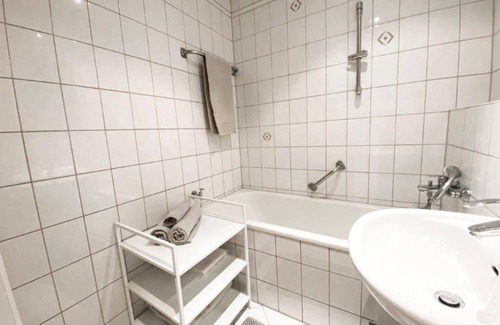 This 1-bedroom, 1-bathroom rental features a sofa bed and air conditioning. Bathroom amenities include a hair dryer, towels, and toilet paper. Other amenities include bed sheets and heating.