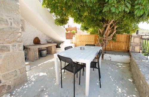 A traditional stone accommodation of Cretan architecture which look like a cave with an external courtyard. "Schefflera Apts" can accommodate up to 5 people and is located in a beautiful village in southern Crete. It has easy access as it is located on the main road of the village. It consists of 3 areas and is equipped with all amenities you may need during your stay. Within a short distance, you will find many beaches and archaeological sites as well as hiking trails. An ideal place to relax!!