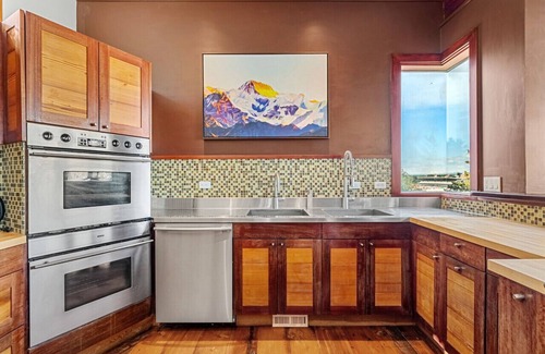 • Luxe Living Spaces: Soak in natural light through floor-to-ceiling windows, with a grand living room boasting a massive wood-burning fireplace and 30-ft ceilings overlooking the views.