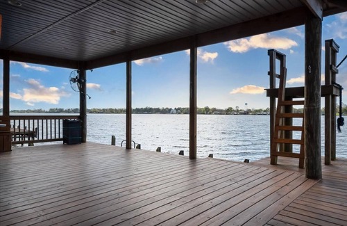 3 bedroom 2.5 bathroom custom home with private pier! Exceptional, light-filled home with beautiful lake views and epic sunsets. 1500 sq. ft. with an additional 800 sq. ft screened porch. Complete with bunk room, ping pong table, basketball goal, canoe and floating mat, this home is perfect for families. One of the best piers on the lake! Huge pier with large covered area with lots of seating and dining space, high jump platform and sun deck.