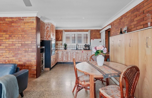 Looking for a no fuss, comfortable place to stay near the beach? This two bedroom, one bathroom apartment is all about location. Just 350 metres from the sand and directly across from the Lennox Head Bowlo, it’s the perfect base for surfers, and families.