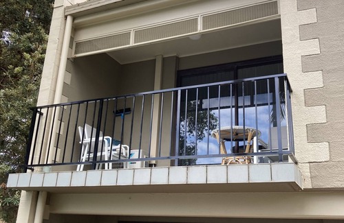 Centrally located, north facing, quiet, two bedroom, first floor apartment. WIFI, Air-conditioned, homely, neat and tidy. Overlooks tennis court and pool. TV, sleeps four (Queen bed/ 2 x single) Baby Travel cot available on request
