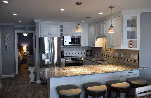 Imagine awakening to views of the sun glimmering off the surface of the ocean or feeling a cool ocean breeze just outside your window every morning. The relaxing sound of gentle waves can only be experienced when you are staying steps away from this stunning body of water. The condo is located a shells throw from the ocean and the views will take your breath away. Totally updated and newly furnished 4th floor condo on one of the best beaches in Hilton Head. Sleeps 6 comfortably, king, queen, single daybed with trundle and queen pullout. Enjoy the amazing sunrise from the living areas, master bedroom, and balcony. Watch the dolphins jumping or the deer taking a morning stroll on the dunes. Fully equipped kitchen with SS appliances, and granite counters. Breakfast bar with stools, dining table for 6. Master bath has large walk-in shower and double vanity. New full size, stacking washer and dryer in unit. Coffee bar with charging station. Free WI/FI and cable TV. 3 TV's in unit. Dining table and lounge chairs on balcony overlooking ocean. Private beach access, large swimming pool and kiddie pool. Gated complex. Beach cart, chairs, shade tents, umbrella, cooler and assorted beach toys supplied for your enjoyment. Short walk next door to JJ's outdoor grille for a cold drink/burger, and bike rental or take a short walk down the beach to the Weston Resort for a great dinner. Walk or bike to breakfast, shopping, parks, tennis, or golf. Close to grocery shopping. Perfect central location.