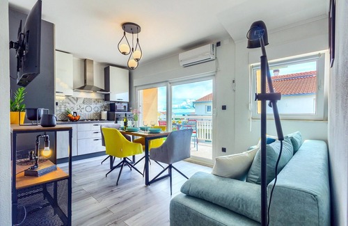 Situated just 300 m from the sea, this cozy 1-bedroom apartment in Kaštel Štafilić offers a relaxing stay for up to 4 guests. Ideal for friends or small families, it features a private terrace, barbecue, and pet-friendly amenities, all within walking distance of local shops and cafés. Guests can unwind on the balcony with mountain and sea views, stroll through the shared courtyard, or enjoy the playful touch of a slide on-site. The fully equipped kitchen includes a microwave, coffee machine, and electric kettle, while free WiFi, air conditioning, and private parking ensure a comfortable stay. With Trogir just 8 km away, and Split Airport only 1 km, the location is perfect for exploring the Dalmatian coast. A charming base for sun, sea, and sightseeing