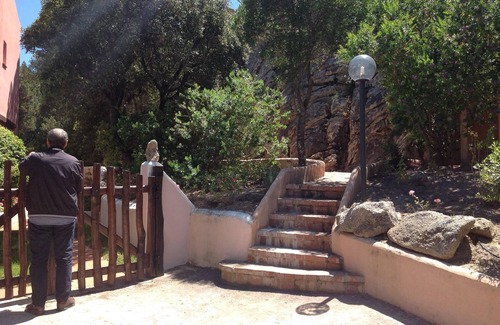Beautiful new house in private residence, located in the heart of the Costa Smeralda. Tasteful, elegant decor and well-equipped kitchen to make your staying unforgettable. "Dolce Gusto" coffee machine for coffee and cappuccino. (Find coffee pods in local shops or in all Europe. Google "Dolce Gusto" and find out.) Eating area on the main terrace is covered. Satellite TV. There are two beautiful terraces with breathtaking views from where you can admire the Pevero bay and sunbathe on chaise-lounges in complete privacy. It is set deep within the characteristic, verdant, Sardinian granite landscape. The property is inside of a fully fenced residence, the majority of which is with natural stone walls. Inside the grounds is a large olive grove and fruit orchard. The property is situated only ten minutes from Porto Cervo and the closest beaches of the Costa Smeralda in a very peaceful rural setting with complete privacy and tranquillity. 3-minute undulating scenic walk through greenery, with about 60 steps from the parking place to the house. A short drive away to reach Costa's Smeralda's stunning beaches, Pevero golf course, the harbour and the 'Piazzetta' of Porto Cervo. Master bedroom, double bedroom and twin bedroom, each with own en-suite bathroom (it can host up to 8 guests). Very functional and well-appointed kitchen. 300 Euro refundable damage deposit in cash on arrival for gate, TV and AC remote control. 1 car-parking place inside the residence. Features: kitchen linen, bed linen and all towels furnished, hairdryers, satellite TV, AC, dishwasher and washing machine, microwave, toaster, american coffee maker provided and 'Bialetti' for italian caffee. Olbia airport (32 Km), shopping centre (5min drive), restaurant Frati Rossi very close