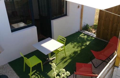 Close to the seaside, shops, 800 m from the village center (market, restaurant, post office, media library, etc.)