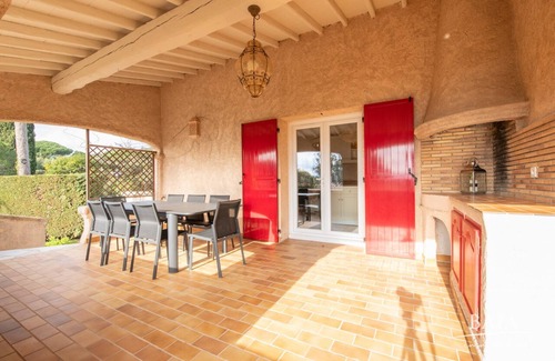In the Commune of GRIMAUD, on the edge of SAINTE-MAXIME, facing the bay of the Gulf of SAINT-TROPEZ, this villa in the Domaine des Cigales offers you all the services to spend unforgettable holidays with family or friends, with a very beautiful sea view with trees.
