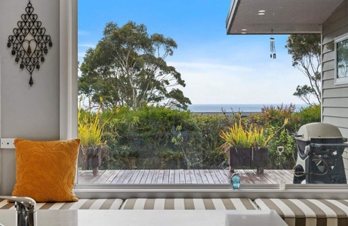 Just a 3 minute walk to Spring Beach, the villa is surrounded by Eucalyptus and lush nature, and has three generous sized bedrooms with built in robes.