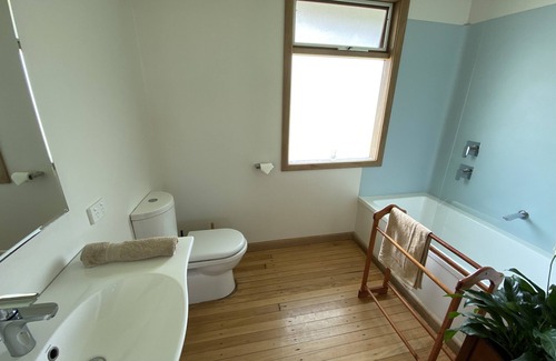 incredible views of sunrise and there are 3 additional single bedrooms. The new bathroom includes a long and deep bath with overhead shower. The light-filled kitchen is fully appointed with ample space for families. Seacroft Chapel is luxurious and has some of the best views from any accommodation on the Great Ocean Road. Light streams in from north, a massive window frames stunning views of Cape Patton and the four south-facing windows look onto the ocean. The large private deck includes outdoor furniture and incredible ocean views.