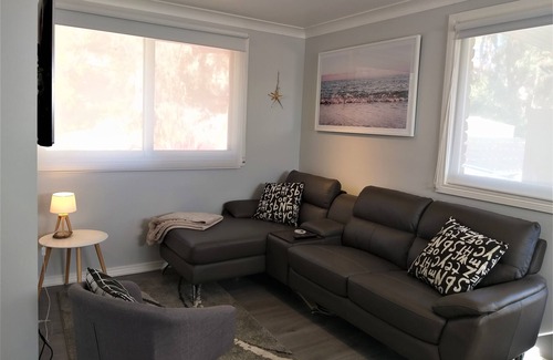 Set in Bushland yet overlooking Beach, Lake, and Waterways, This Large & Spacious Apartment has Open-Plan Living that adjoins an Awesome Part-Covered Viewing Deck, The Funky Kitchen is well designed, has a great Benchtop-Bar Combination. as well as Adjacent Dining for 6 plus. There's Water Inspired Art, 2 Large Bedrooms with built-ins, A Separate Laundry, 2 Toilets, A large Comfortable Living area, A Private Entrance, A Large TV & Entertainment, Fast Internet, Subtle lighting and Views from every window. It's suitable for families or couples. also - (smoking is ok outdoors only including on the covered balcony. Parties are not allowed Police would be called, Guests must agree to a maximum of 6 people in the apartment at 1 time.)