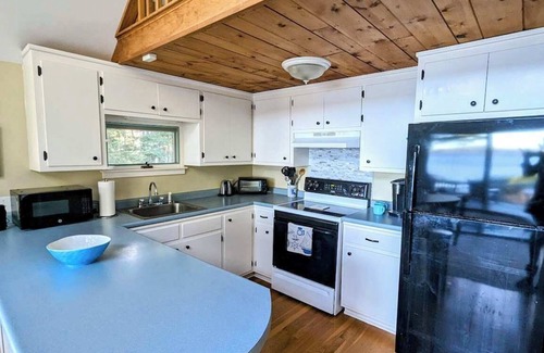 The living room and kitchen have a vaulted ceiling with a water view from any seat in the house! The smart TV will keep the kids entertained while you get dinner cooking on the grill. Eat inside, or enjoy the sunset on the deck over a lobster dinner.