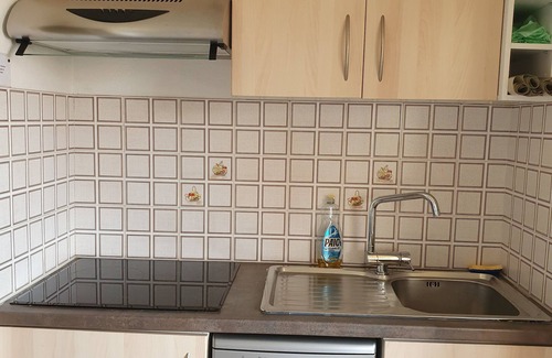 Kitchen with dishwasher, ceramic hob, fridge with freezer, hood, oven, coffee maker, kettle, toaster ...