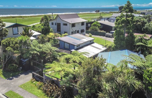Eat out undercover on the deck, listen to the waves just 150 metres away. Across the road from a great cafe, and two mins across the park to the swimming beach. Watch live tv, stream via the smart google chromecast, or enjoy our library of dvds and books.