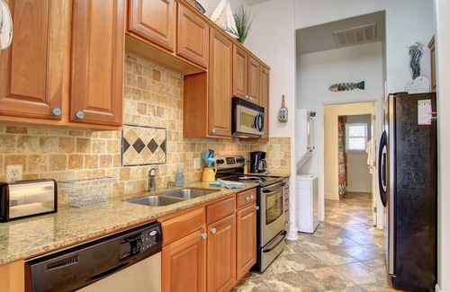 Plan your next vacation to this beautiful beach home, conveniently located close to the neighborhood pool and beach boardwalk in Port Aransas's popular Sand Point subdivision. Enjoy the ocean breeze under the covered patio at the picnic table or other outdoor seating for a BBQ with your family, or make your way inside the downstairs apartment to enjoy the comfort of this coastal getaway with beachy décor!