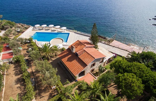 The house is situated right at the sea front only few meters above the sea level and has access to the beach. Right in front of the house there is the large seawater swimming pool, 20x10m and 4 meters at its deepest. The swimming pool area is fitted with all necessary facilities including umbrellas, furniture, shower, changing room etc.
