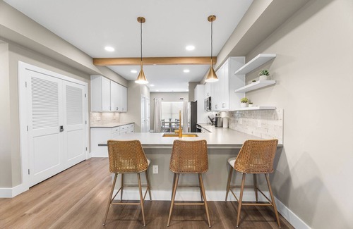 Each two-bedroom unit offers over 1,000 square feet of thoughtfully designed space, featuring brand new furnishings, high-speed Wi-Fi, a full kitchen, washer and dryer, and access to an outdoor pool and fitness center. Up to two dedicated parking spots are included with your stay, with additional parking available upon request.