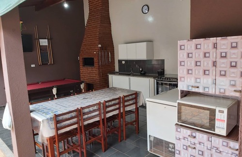 The house is a new and well structured construction to accommodate up to 15 people. It consists of 3 suites - each with air conditioning and television - living room (with Smart TV), external bathroom, and large leisure area with barbecue, pool, pool table and television.