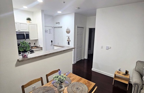 Located in the heart of Seattle, in the vibrant Belltown neighborhood, this 1-bed, 1-bath apartment (up to 4/queen sofabed) is next to the city's most exciting attractions. On the first floor of our building, you'll find 7 different restaurants, with bars, clubs, and plenty of nightlife steps away. The city's top sights, including the waterfront with the Ferris wheel, aquarium, and Pier 66, are only a 10-12 minute walk. You're also close to the Space Needle, where you'll find museums and seasonal activities for all ages. In the summer, enjoy the iconic water fountain in full swing. Plus, the apartment features a private balcony with stunning views of the Space Needle. This is the ideal spot for a getaway in Seattle, with everything you need to experience the city's best in one convenient location.