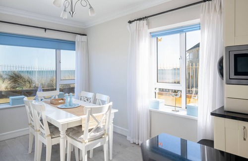 A beautiful modern two bedroom apartment on the beach front in Rosslare Strand, Co. Wexford has a patio area with garden furniture and beautiful sea views.