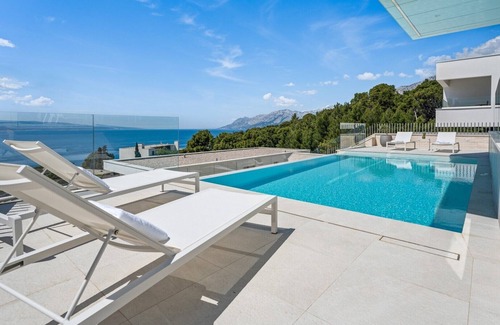 Seaview villa with Wellness, Dreams Of Dalmatia I Private and heated 30sqm pool, Wellness, Hot-Tub, Gym, 4 en-suite bedrooms, 220m from the beach in Baska Voda is located in Brela. Seaview villa with Wellness, Dreams Of Dalmatia I Private and heated 30sqm pool, Wellness, Hot-Tub, Gym, 4 en-suite bedrooms, 220m from the beach in Baska Voda provides accommodation, featuring Pool, Private Pool, Security/Safety, among other amenities. This Villa features Pool, Private Pool, Security/Safety, to make your stay a comfortable one.
