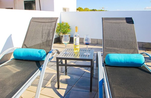 exclusive townhouse, just 200m from the beach, with fantastic seaviews from private terrace, for 2-4 persons, a/c warm/cold, SAT-TV, free Wi-Fi, safe. New, superbly appointed town house in the old fishermen’s quarter of the village Conil - with fantastic sea view from the two private terraces.