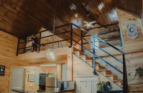 The cabin includes everything you need for a comfortable stay: a fully equipped kitchen with coffee and snacks, washer and dryer, dishwasher, high-speed Wi-Fi, streaming services, classic arcade games, and more.