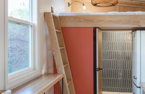 Freshen up in the spa-like bathroom where the elegant walk-in shower has select eco-conscious amenities and a dual rain shower and handheld showerhead. The bathroom is complete with a washer-dryer combo and composting toilet.