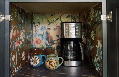- Kitchen includes: Mid-size fridge, microwave, toaster oven, induction cook top (solo), blender, coffee maker, tea hot pot